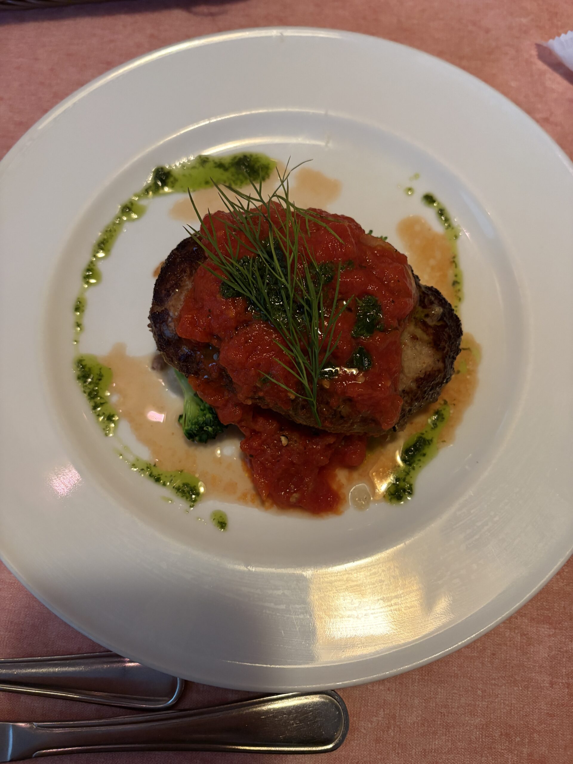 次はメインの子羊のハンバーグ(トマトとバジルソース)