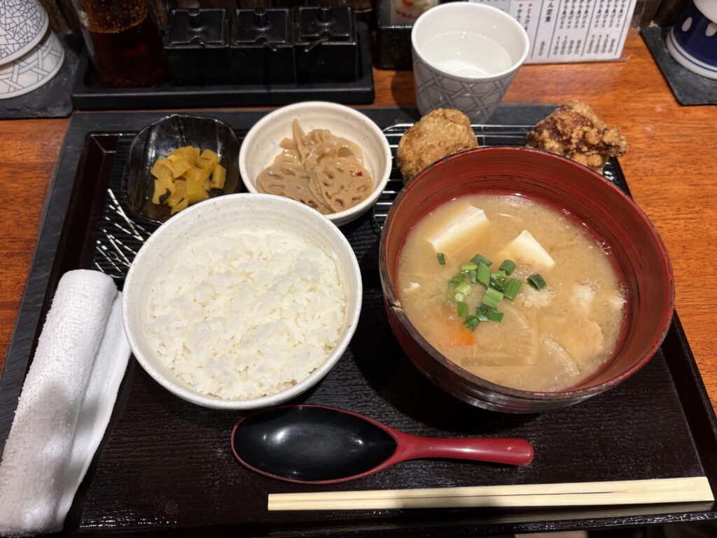 とん汁(大)は具だくさんで、 からあげはジューシーで美味しかったです。